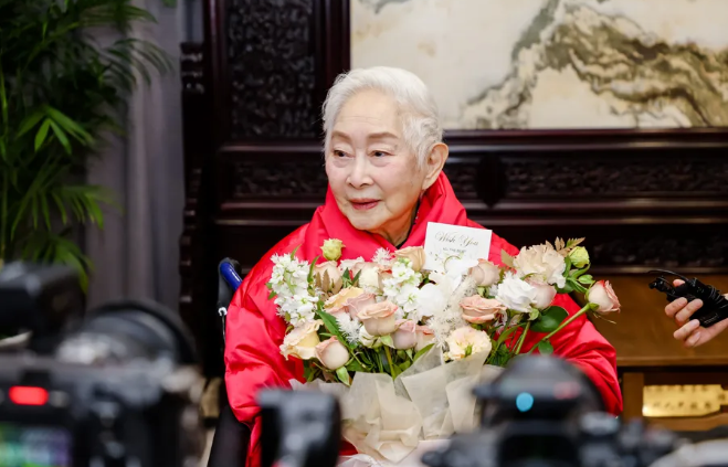 “很高興回到母校, 仿佛看到了80年前開啟大學(xué)時(shí)光的我…”12月8日,近百歲的傳奇影后、 上海交通大學(xué)1945級財(cái)務(wù)管理專業(yè)校友盧燕攜家人好友重返母校。