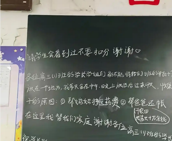 近日,一張“高中生在黑板上留言收廢瓶”的圖片引起關注。