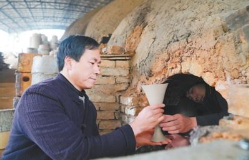 位于贛西的靖安縣漁橋村,綠樹青竹掩映下的靖窯陶瓷坊古樸自然。一早,陶瓷坊創始人伍映方和兩個兒子便忙著把裝滿陶瓷坯體的匣缽安放在窯爐內。守在窯口旁,伍映方像30多年來的每一次燒窯一樣,滿心期待泥與火相融合的精彩。