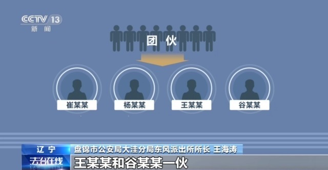 遼寧省盤錦市公安局大洼分局東風(fēng)派出所所長 王海濤:這個團伙由崔某某召集楊某某。然后又召集了王某某和谷某某,崔某某和楊某某是一伙,王某某和谷某某一伙。兩伙人同時作案,互相召集小工,進行盜竊,然后將被盜物品堆積到一起,由王某某和崔某某進行統(tǒng)一的銷贓。將銷贓所得來的錢進行開工資式的分配和分紅的分配。