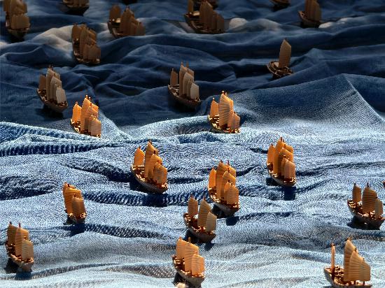 2014年7月,付昆祥團隊歷時3年打造的1:50比例的鄭和船隊完成。208艘各類艦船重現天日:最外圍的一層是戰(zhàn)船,往里依次是馬船、水船、糧船,其中最醒目的,是簇擁在船隊中央,樹立著“九桅十二帆”的旗艦——“天元號”寶船。船隊呈“飛燕陣”排開,栩栩如生。