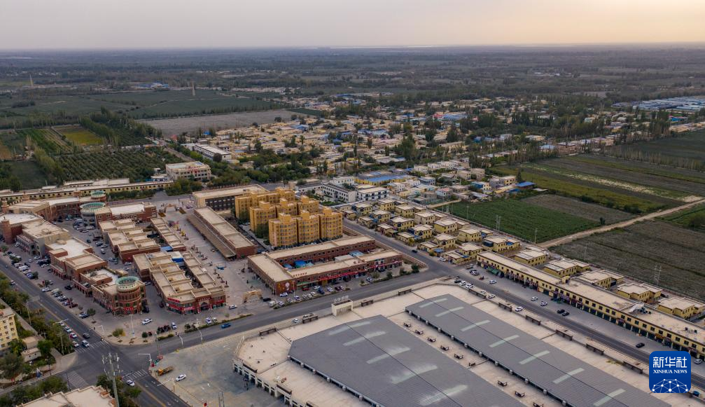 這是9月18日拍攝的新疆巴音郭楞蒙古自治州尉犁縣達西村(無人機照片)。新華社記者 陳朔 攝pagebreak