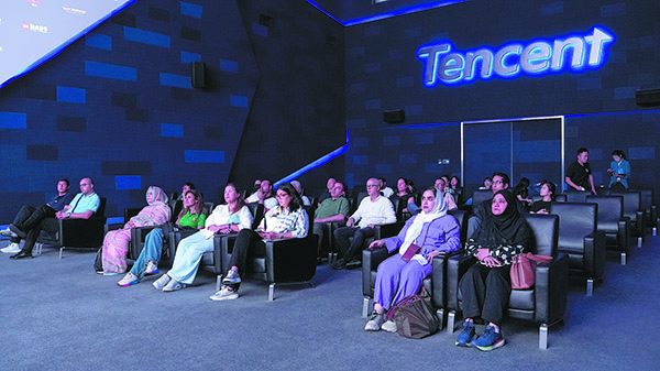 Participants of the training program visit the Tencent headquarters in Shenzhen. [Photo provided to China Daily]