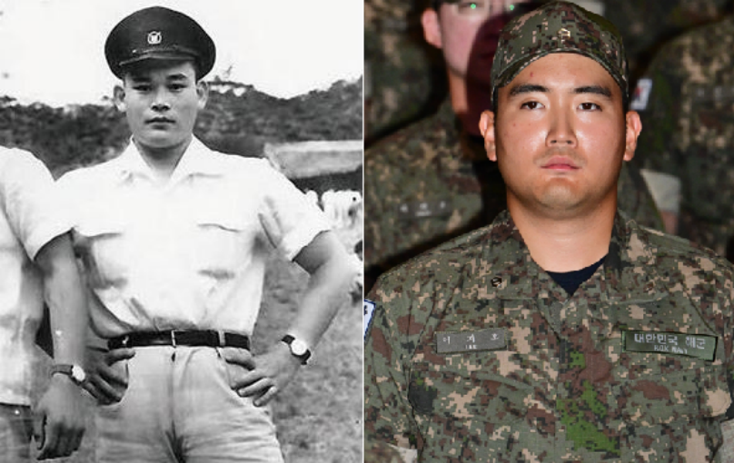 就在公眾熱議他的服役決定時,李智昊身穿軍裝的照片開始在韓國網(wǎng)絡上流傳。不少韓國網(wǎng)友發(fā)現(xiàn),他的相貌與爺爺李健熙頗為相似。