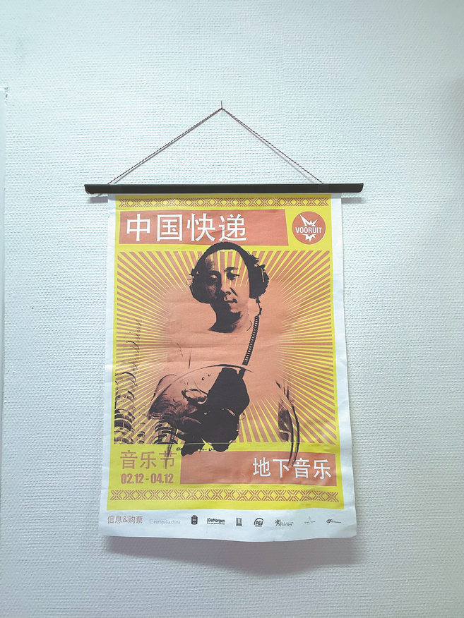 The poster of a Chinese concert that Dessein attended almost 20 years ago, which he kept as a precious item in office. WANG JINGJING/FOR CHINA DAILY
