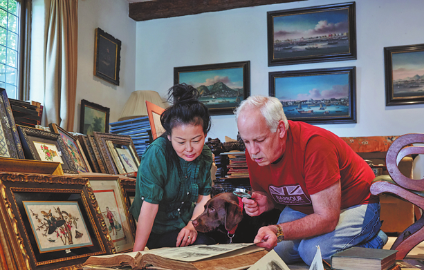The couple research the history of their pith painting collection at home. CHINA DAILY