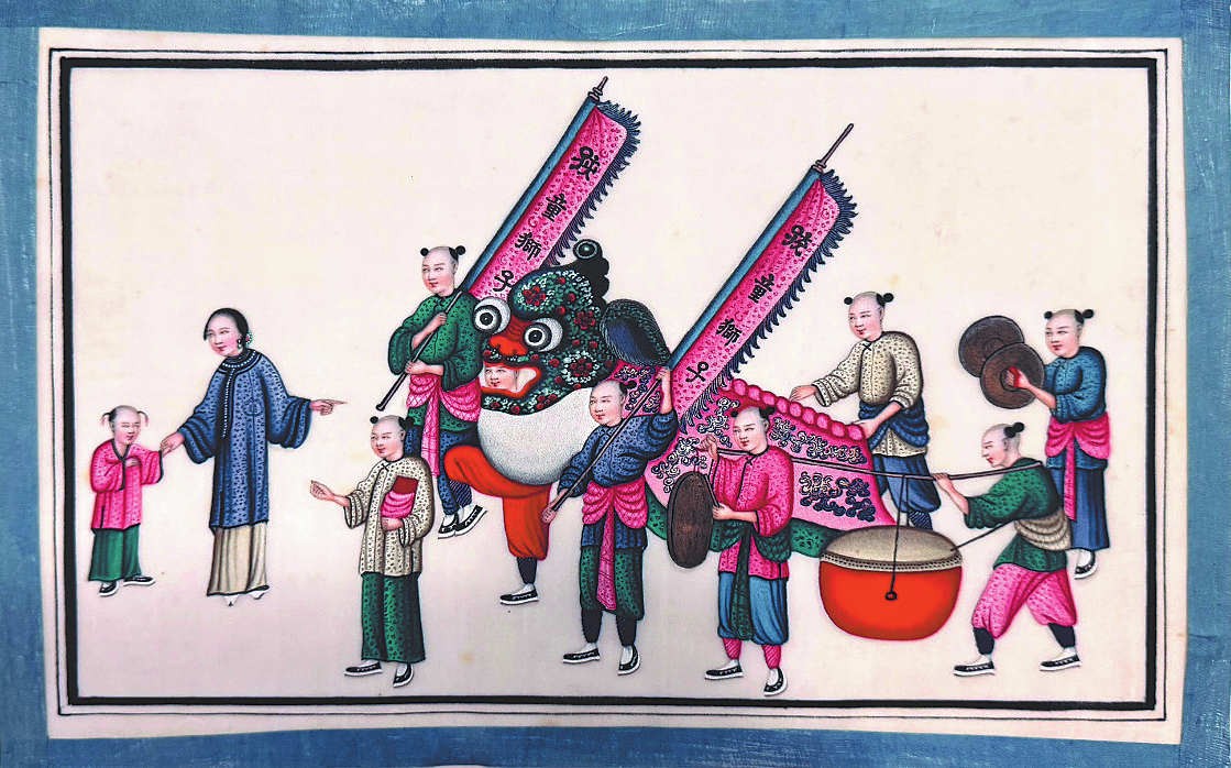 A Tongcao painting features a mother showing her child a dragon dance performance during Chinese New Year. CHINA DAILY