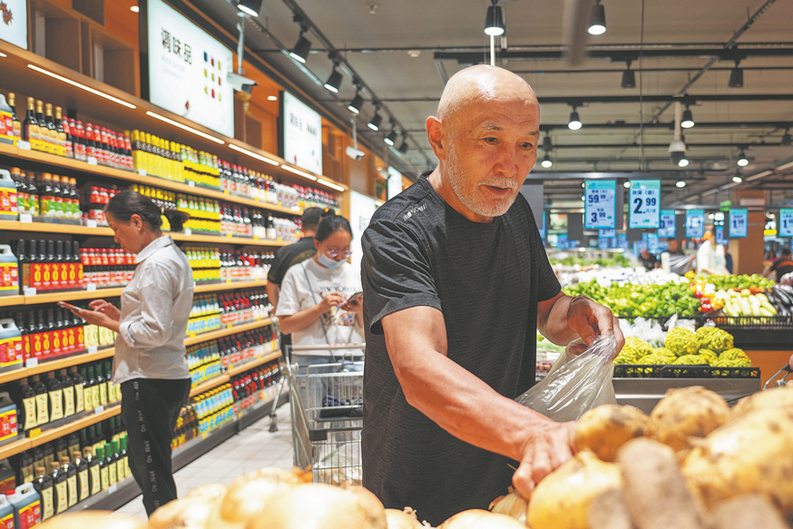 Saulebek Kabylbekov shops for potatoes at a supermarket in Daqing city, Northeast China's Heilongjiang province, July 16, 2025. ZHANG TAO/XINHUA