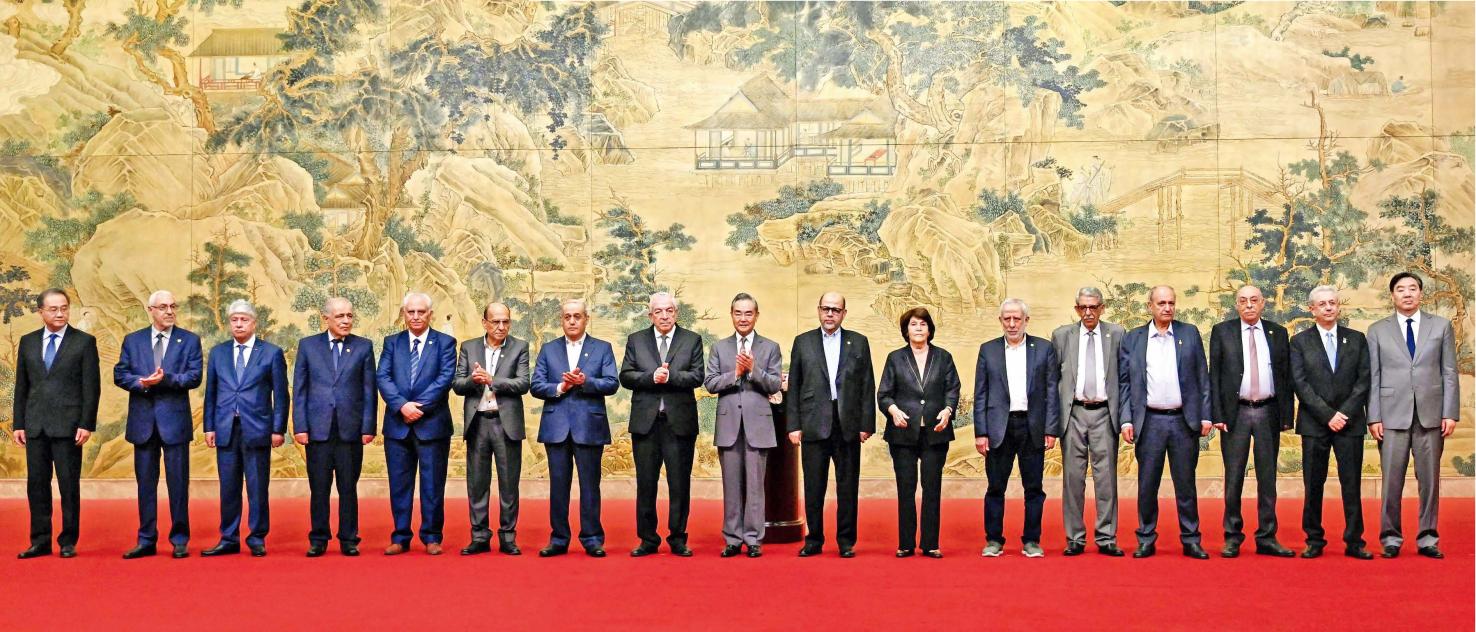 2024年7月23日上午,北京,在中方的邀請和主持下,巴勒斯坦14個派別代表簽署《關于結束分裂加強巴勒斯坦民族團結的北京宣言》。(視覺中國)