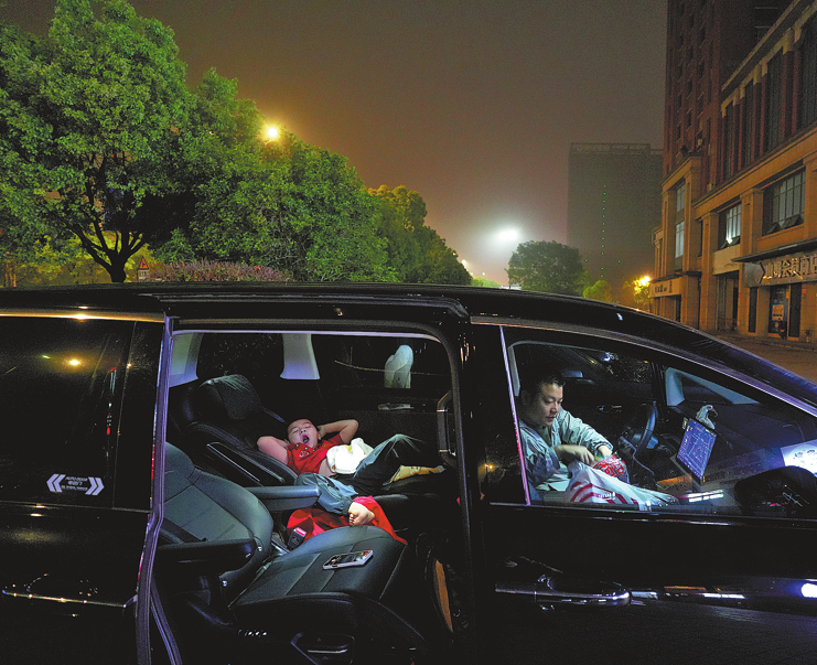 After a long drive from Guangdong province, Wu Yiren and his father arrive in Jiaxing city, East China's Zhejiang province, at dawn on April 22, 2025, to take part in a tournament. CHEN FAN/FOR CHINA DAILY