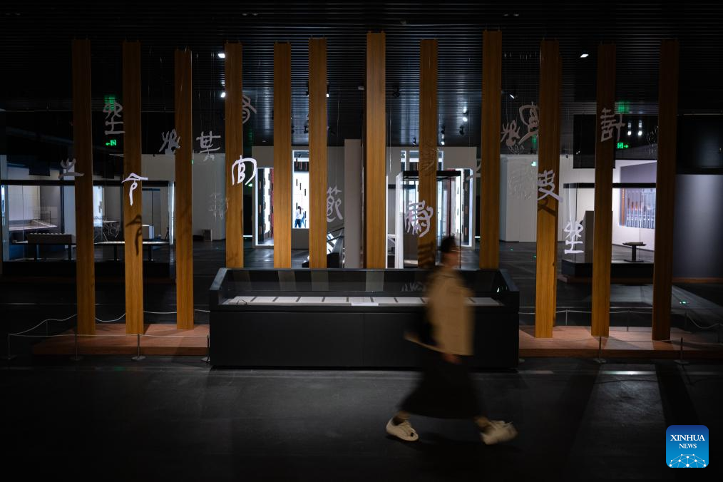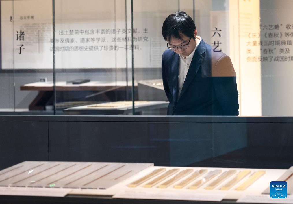A man visits the exhibition "Ancient Chinese Bamboo and Wooden Slips" at the Hubei Provincial Museum in Wuhan, central China's Hubei Province, Oct. 28, 2025.