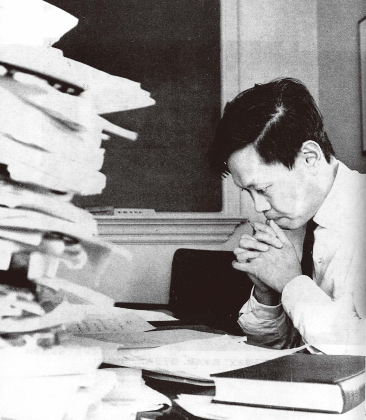 世紀之交,我在英國劍橋大學卡文迪許實驗室以及應用數學與理論物理系工作。我在辦公桌上方貼了一張楊先生1963年在普林斯頓高等研究院辦公室的照片。照片中,他坐在堆得高高的文獻旁沉思。當時,我的一項研究與楊先生的一篇論文密切相關,我就通過電子郵件向他請教。他不僅回了信,還把他簽名的中文文集和英文論文集送給了我。