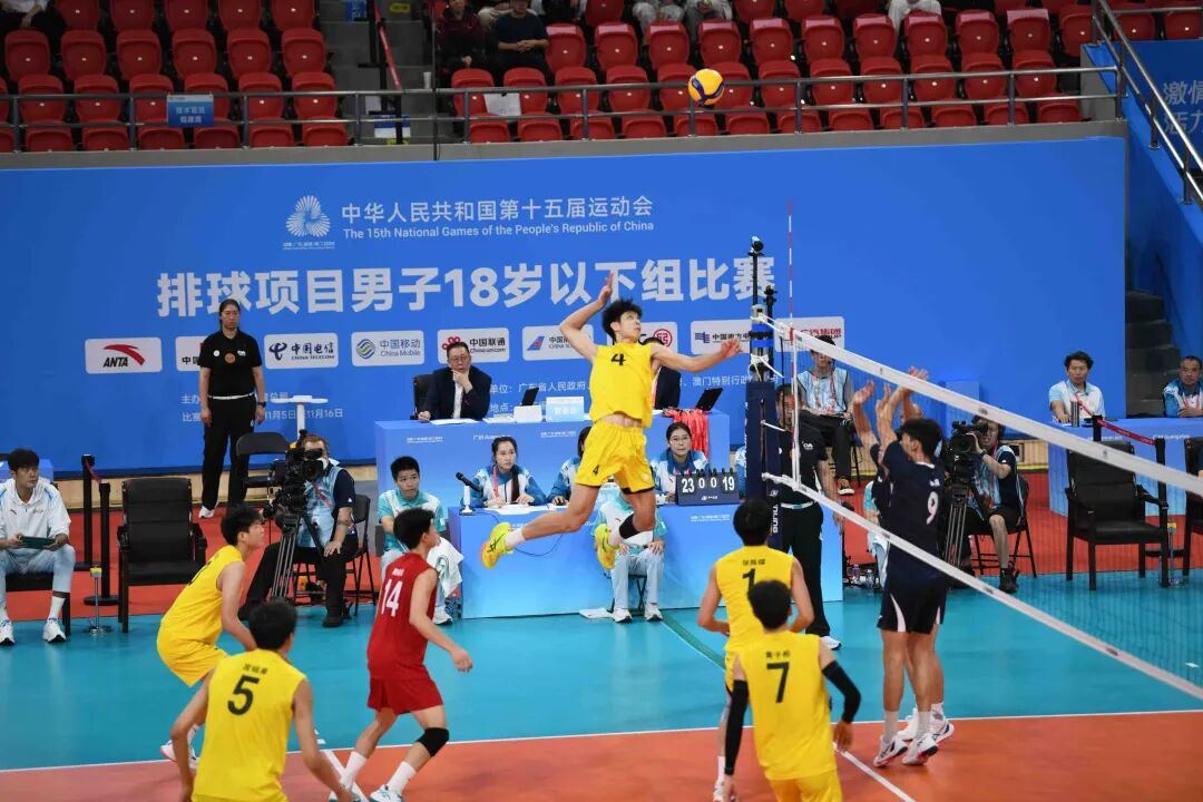11月16日晚,第十五屆全運(yùn)會(huì)排球項(xiàng)目男子18歲以下組決賽在廣州天河體育館落幕。浙江隊(duì)?wèi){借流暢的進(jìn)攻和嚴(yán)密有序的防守,以總比分3比0擊敗江蘇隊(duì),獲得冠軍。