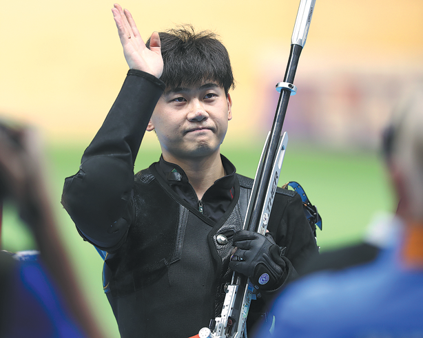 Liu Yukun won the men's 50m rifle 3 positions gold with a score of 470.1, breaking his own world record of 468.9 set in 2024. XINHUA