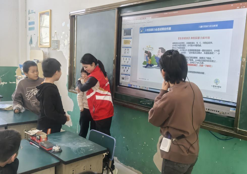 本次公益課程聚焦安全防護、心理成長與未來規劃三個重點方向,采用情景模擬、互動游戲、小組討論等生動形式,營造了積極活潑的課堂氛圍。在“防欺凌”課堂中,通過角色扮演模擬沖突場景,同學們學會使用堅定語氣拒絕霸凌行為,并掌握向老師和家長求助的有效途徑;情緒管理課程中,同學們在志愿者的引導下通過繪畫表達情緒,在分享交流中學會理解他人感受、調節自我情緒。在職業啟蒙課上,志愿者們結合自身經歷,分享了職業故事。隨后,同學們圍繞不同職業進行自由交流和深入探討,初步構建起對職業世界的多元認知。