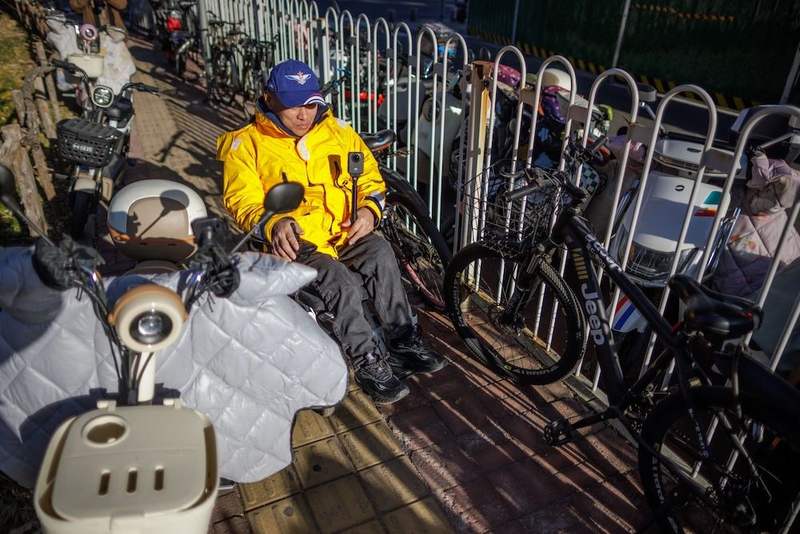 12月1日,張屹從果園地鐵站門口的非機動車道“突圍”。