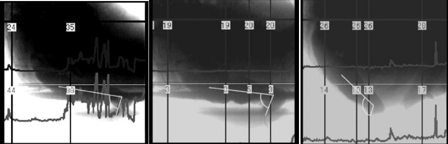 直腸-肛門角的角度越小,意味著直腸和肛門折疊得越厲害,而角度越大,意味著折疊程度越低。假如是 180 度,就意味著直腸和肛門成一條直線,便便可以暢通無阻地“傾瀉而出”(不過這樣的情況一般不會出現)。