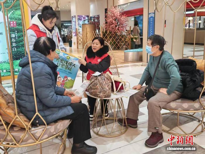 (資料圖)郝韻(中)為老年人普及政策。 受訪者供圖