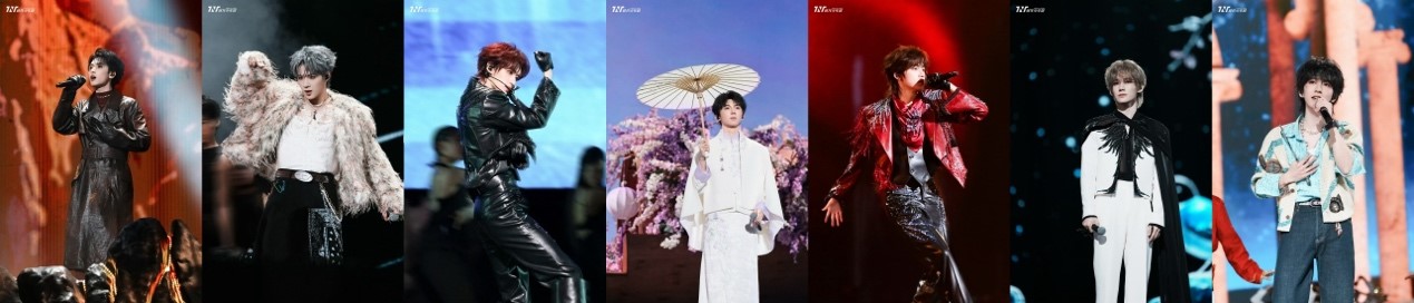 七位少年的個人舞臺同樣亮點頻出。馬嘉祺一襲白衣?lián)蝹阊堇[《蘇州河》,被贊“水墨畫中走出的貴公子”;丁程鑫一頭紅發(fā)致敬經(jīng)典,《拒絕再玩》唱跳充滿野性張力;宋亞軒身穿紅衣獻唱《羊皮先生》,魅惑轉(zhuǎn)音驚艷四座;劉耀文新歌《SAUCE》舞臺首秀,勁爆舞臺引爆尖叫;張真源深情翻唱《用情》,情感飽滿直擊人心;嚴浩翔身著長款皮革風(fēng)衣帶來《動搖》,氣場全開展現(xiàn)舞臺掌控力;賀峻霖卷毛造型甜唱《愛你》,靈動可愛獲封“童話小兔”。