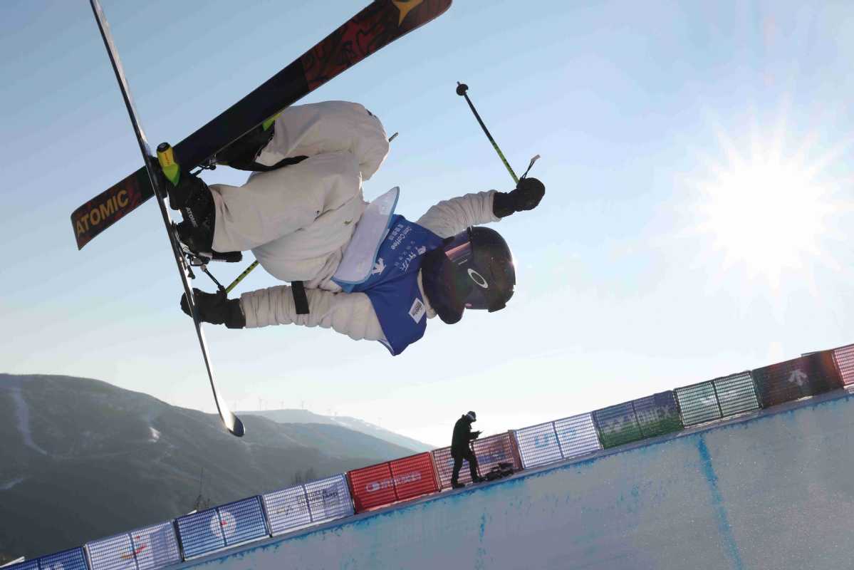 Chinese skier Li Fanghui performs a trick during her qualification run at the FIS Freeski Halfpipe World Cup series' Chongli leg in Zhangjiakou, Hebei province, on Thursday. WEI XIAOHAO / CHINA DAILY